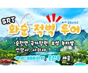 ※ SRT왕복열차비, KTX열차비.전용차량비, 숙박비(리조트), 1박4식,입장료(다산박물관.우드랜드.대한다원.화순적벽.순천만국가정원)
